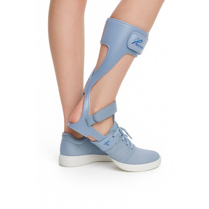 Designed with a dorsal shell made of polypropylene with a leaf spring action to arrest the plantar flexion movement and lift the foot. It supports and stabilizes the ankle and foot in all foot drop conditions. Designed to aid in swing phase toe clearance and to reduce plantar flexion impact in the early stance